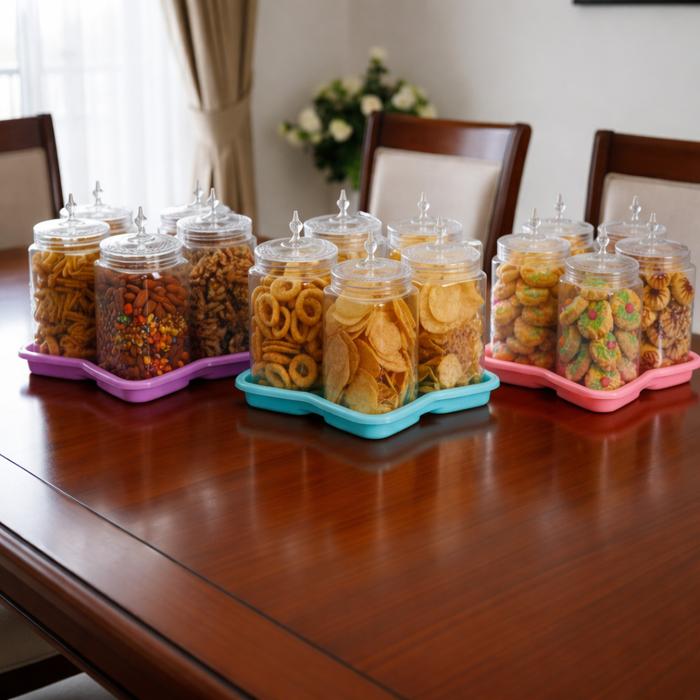 TOPLES SNACK KRISTAL PREMIUM JEON LIMA BUNGA TOPLES SET NAMPAN TOPLES KUE KERING TOPLES SET LEBARAN 5IN1 CALISTA - TOPLES KRISTAL JEON BUNGA - BLUE 900ML, BUBBLE