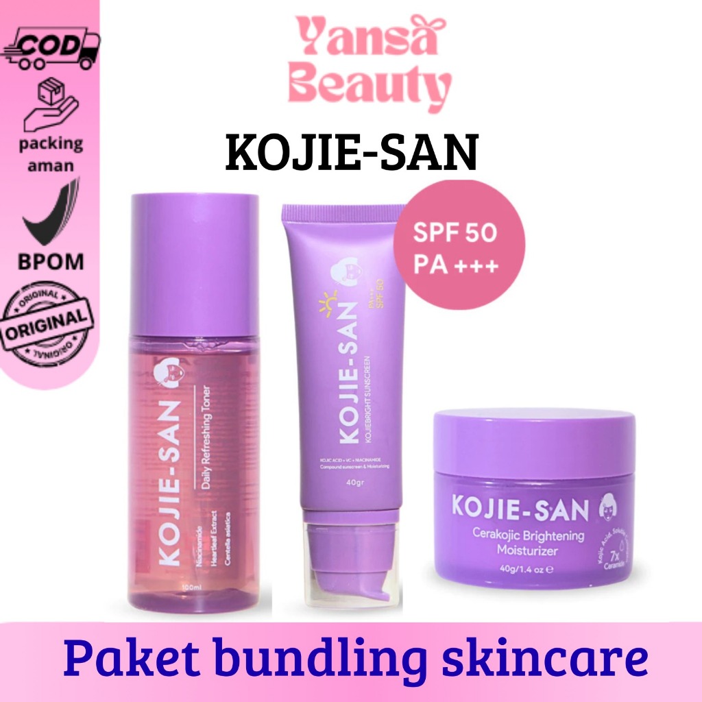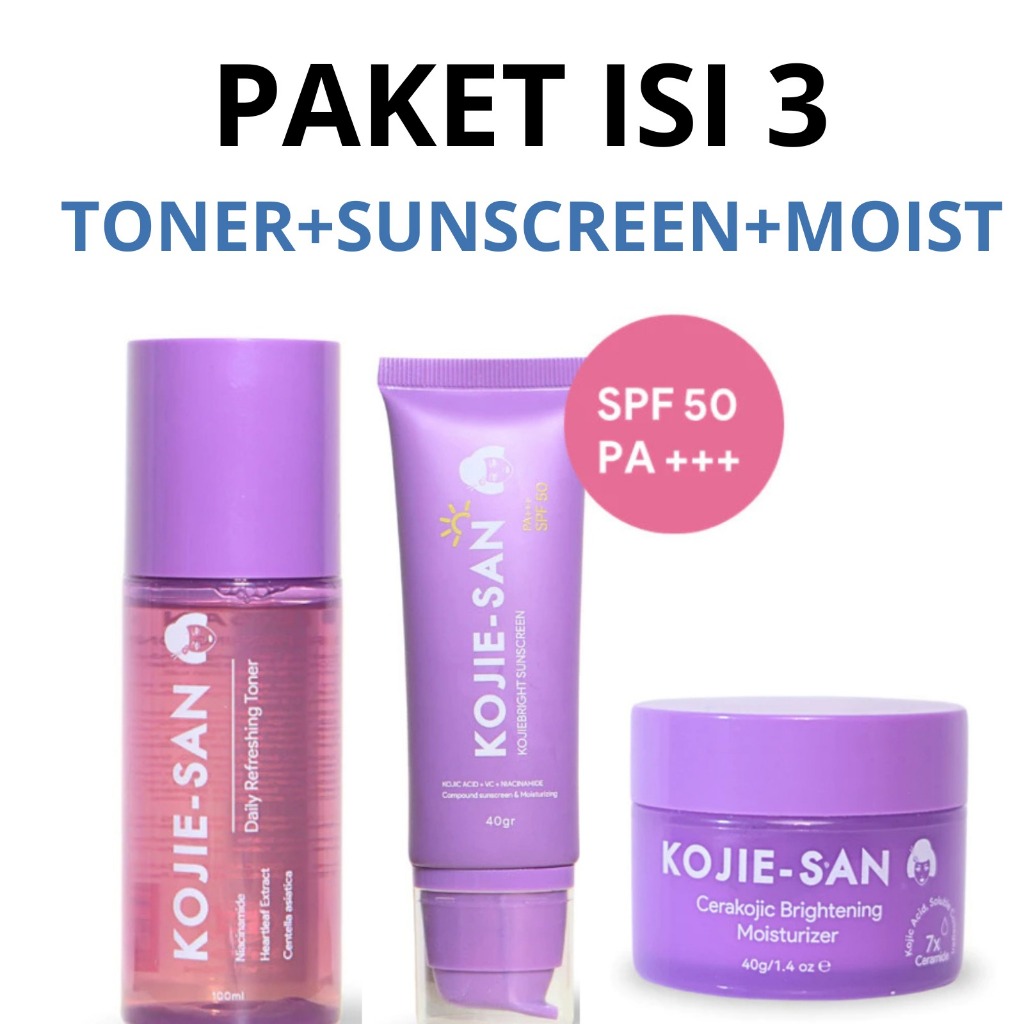 KOJIE-SAN BUNDLING Skincare Set Brightening Toner + Moisturizer + Sunscreen Mencerahkan Kulit