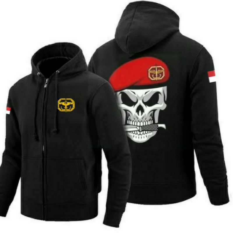 JACKET ZIPPER KOPASSUS LOGO DEPAN BELAKANG TENGKORAK NEW MODEL