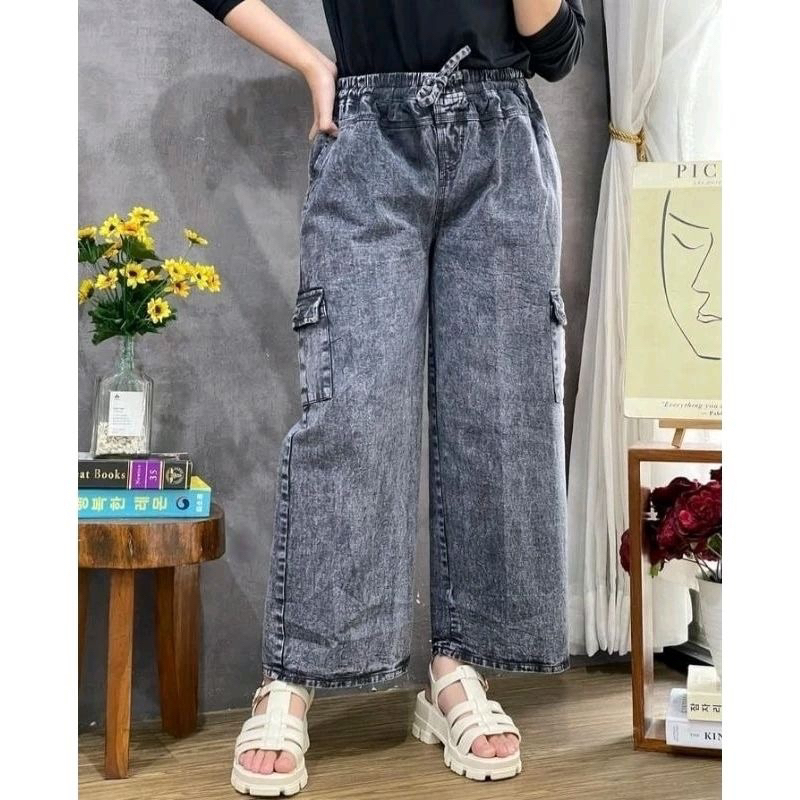 Celana kulot cargo wanita - Kulot jeans cargo - Jeans cargo wanita kekinian