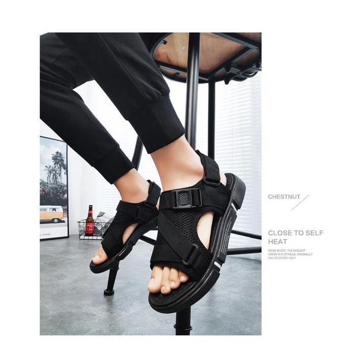 SH37 SANDAL GUNUNG PRIA KEREN EMPUK - ALL BLACK, 44
