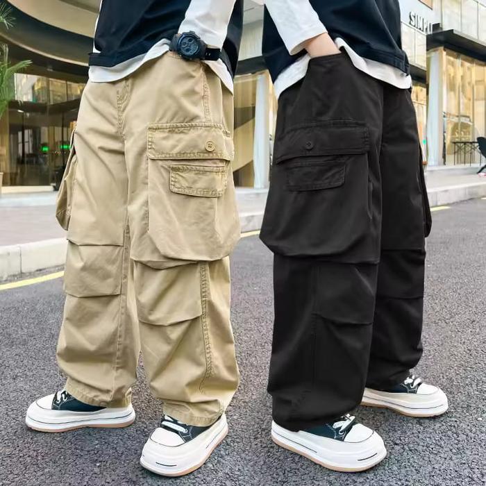 CELANA CARGO ANAK LAKI-LAKI CELANA PANJANG ANAK CELANA SKENA ANAK LAKI-LAKI CELANA LONG CARGO FASHION ANAK - KHAKI, 1-2