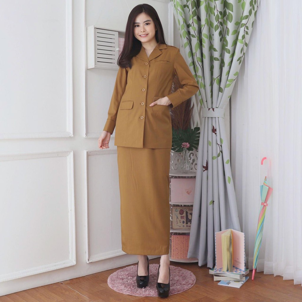 Blazer Seragam Wanita Formal Kerah Jas Lengan Panjang 3 Kantong Stelan ROK A / ROK SPAN / CELANA Warna KHAKI MUDA / PEMD
