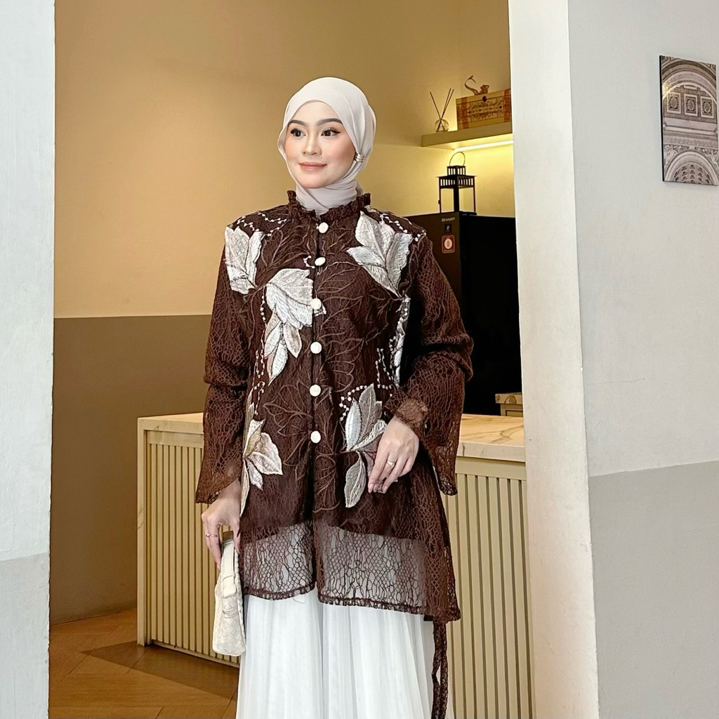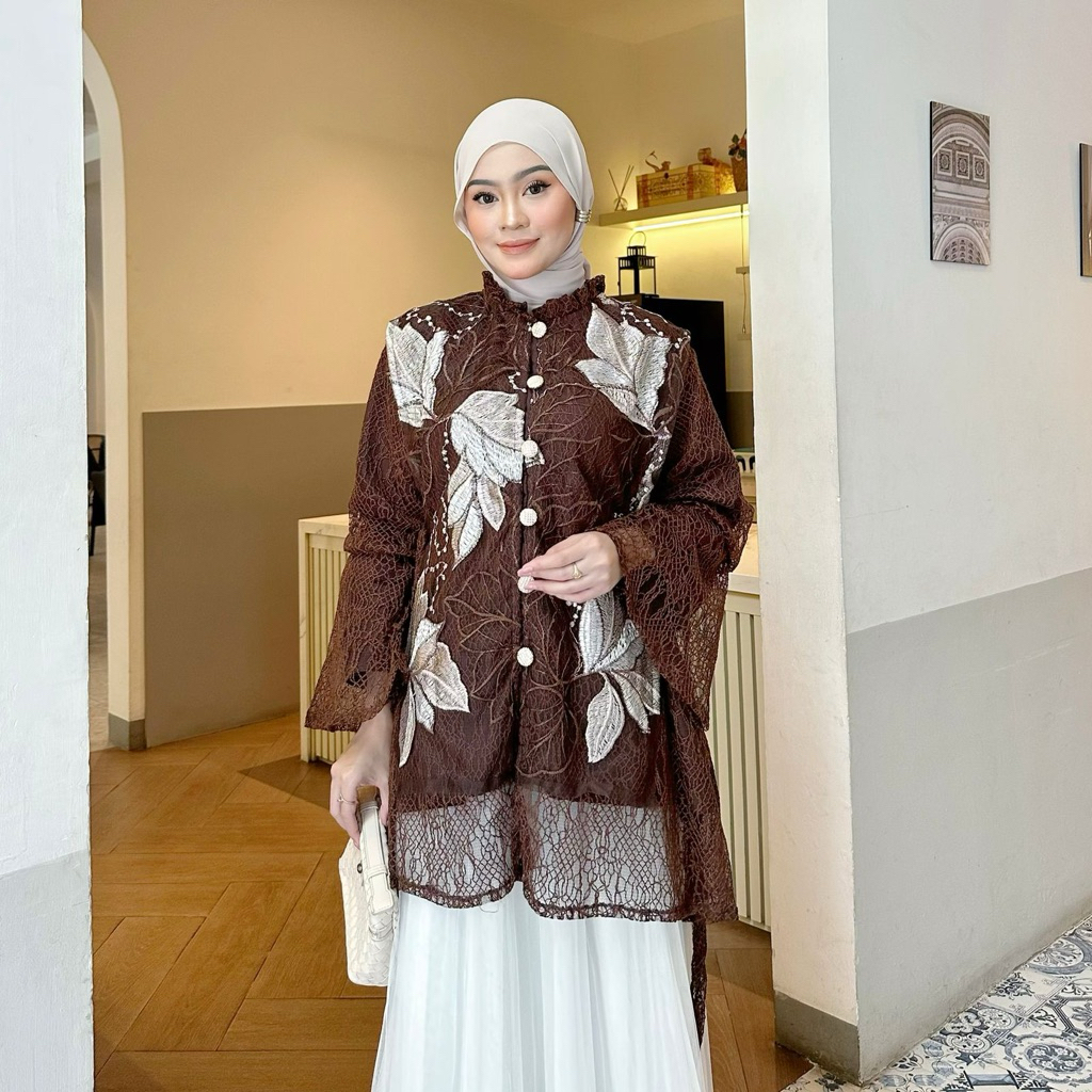 Blouse Putih Brukat Wanita Jumbo Atasan Bigsize Busui Friendly Kondangan Lebaran By Eshantai