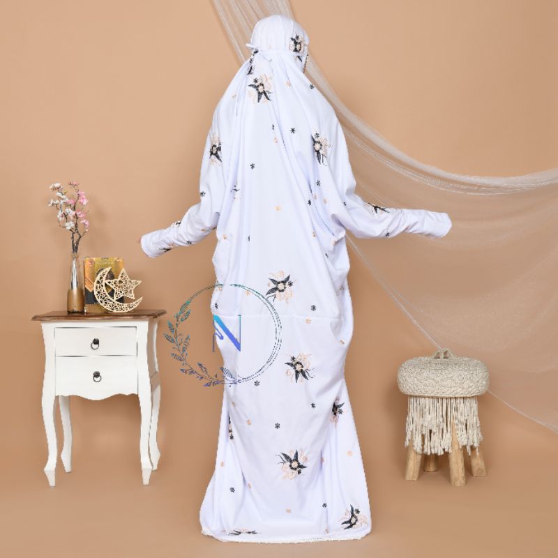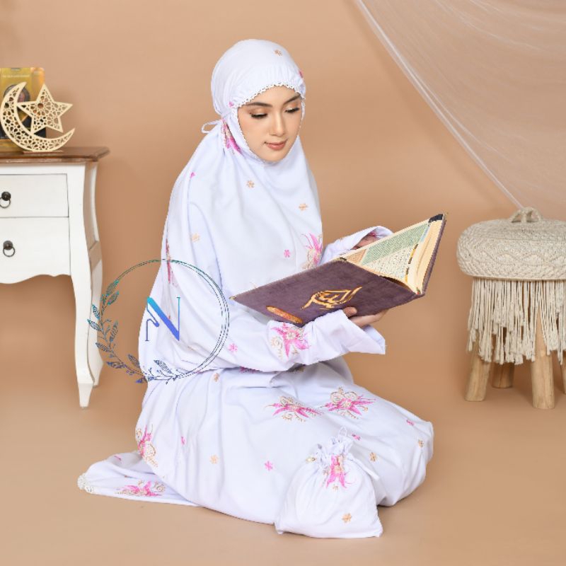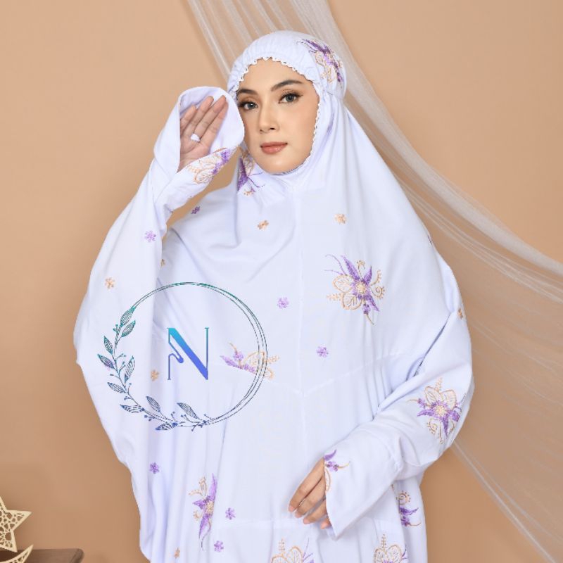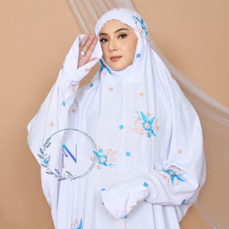 BY NADEERA MUKENA-Mukena Terusan Dewasa Katun Bordir Bunga Serangkai Mukena Langsungan Dewasa