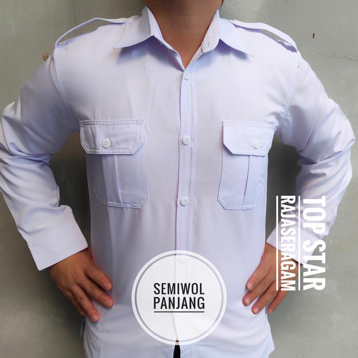 KEMEJA PUTIH PNS PRIA SEMI WOL HEM PUTIH ASN ATASAN PUTIH PDH - PENDEK, XXXL