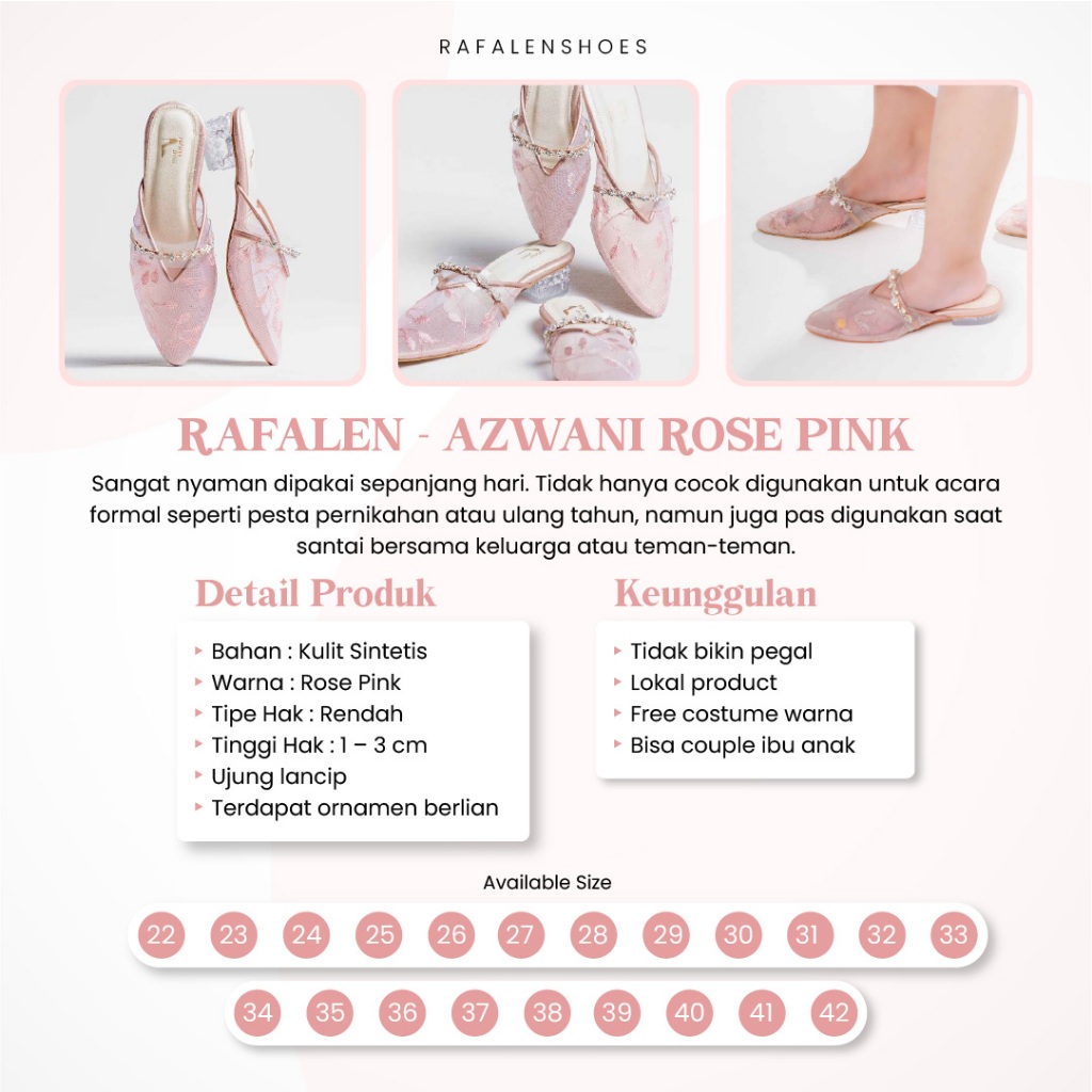 Rafalen Azwani Rosepink - Sendal Flat Kondangan Couple Ibu Dan Anak Elegant Kekinian By Rafalen Shoes