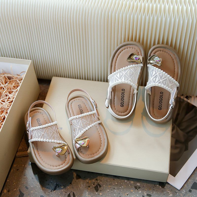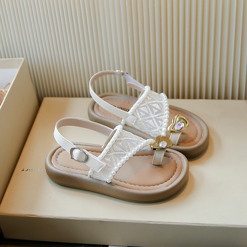 Sandal Ujung Terbuka Mutiara Berlian Hati Penuh Kasih Untuk Anak Perempuan Sepatu Anak-anak Nyaman Sol Lembut Bordir