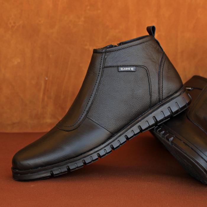 Gladio Footwear - Sepatu Pria Casual Boots Fashion Kulit Sapi Original Gonzales Hitam Karet Shoes