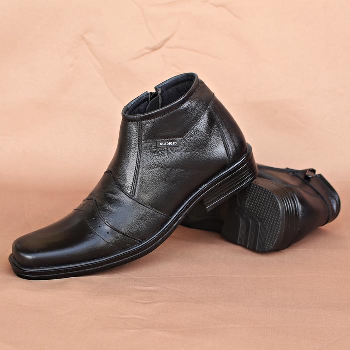 Gladio Footwear - Sepatu Pantofel Tinggi Kulit Sapi Casual Formal Pria Beto Hitam Boots Karet Shoes