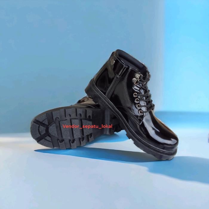 Sepatu Pdh Tali Resleting Security Tni Polisi Dop&Kilap Sol Terbaru Boots Shoes Kerja Hitam Pria