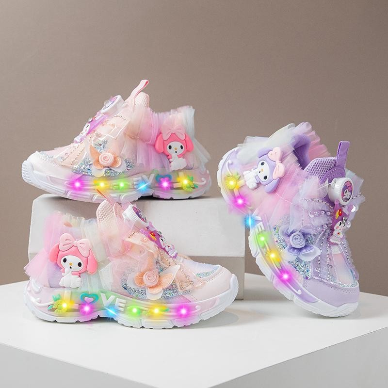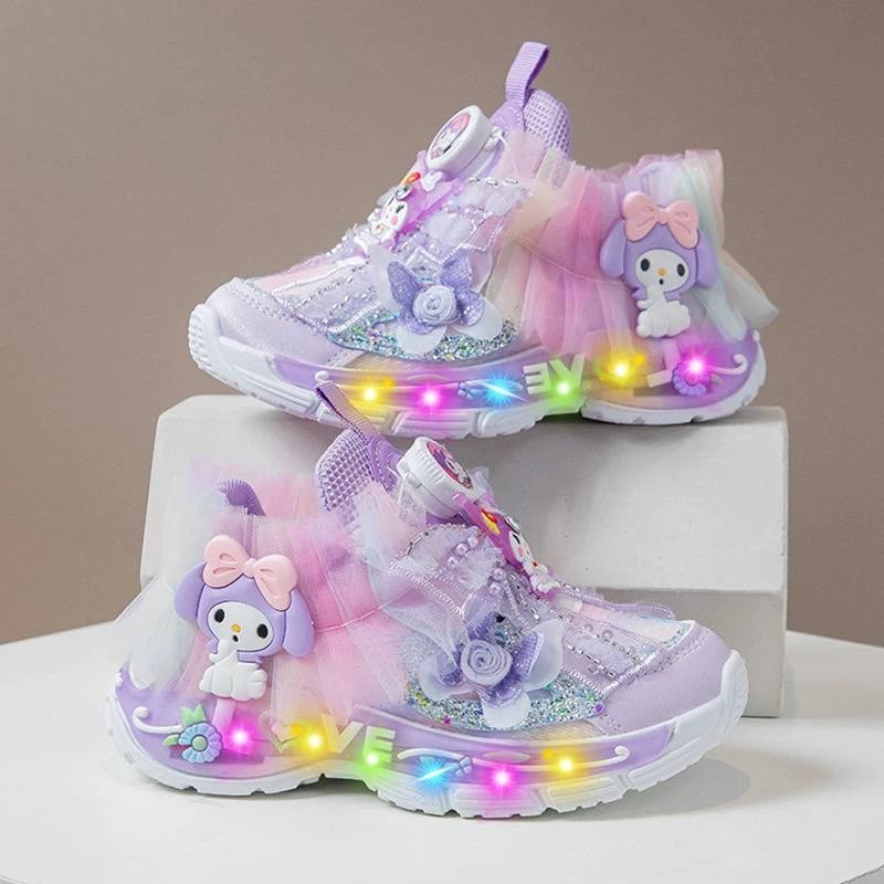 (LOLI-JKT) SP- 892 SEPATU LED ANAK CEWEK MELODY TILE RAINBOW PITA KUROMI MANIK TALI PUTAR SIZE 23-36