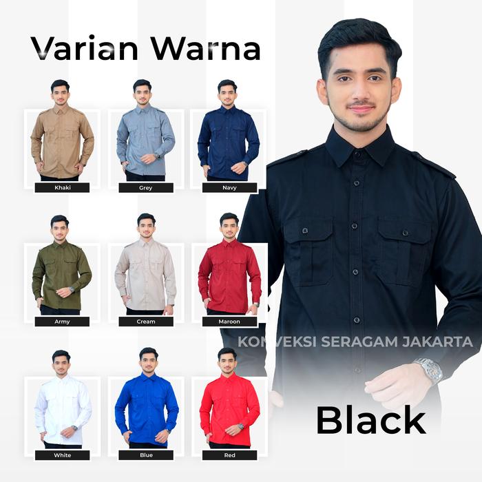 PDL BAJU KEMEJA SERAGAM KERJA PAKAIAN DINAS LAPANGAN HITAM BORDIR - HITAM, S