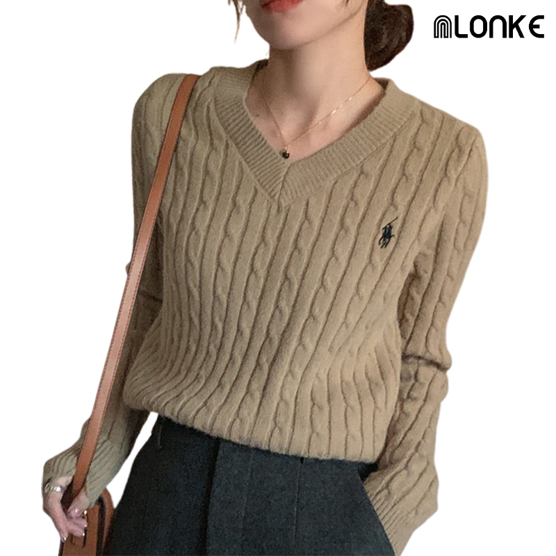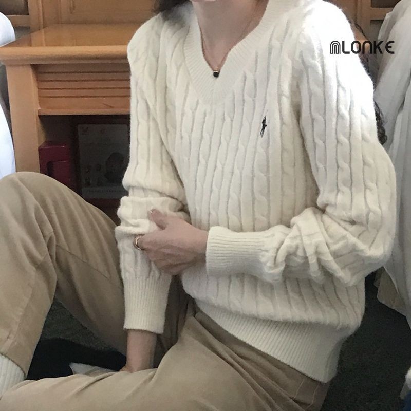 Nlonke - Sweater Rajut Retro Atasan Rajut Wanita V-Neck Rajut Crop Baju Rajut Wanita Lengan Panjang Casual Style