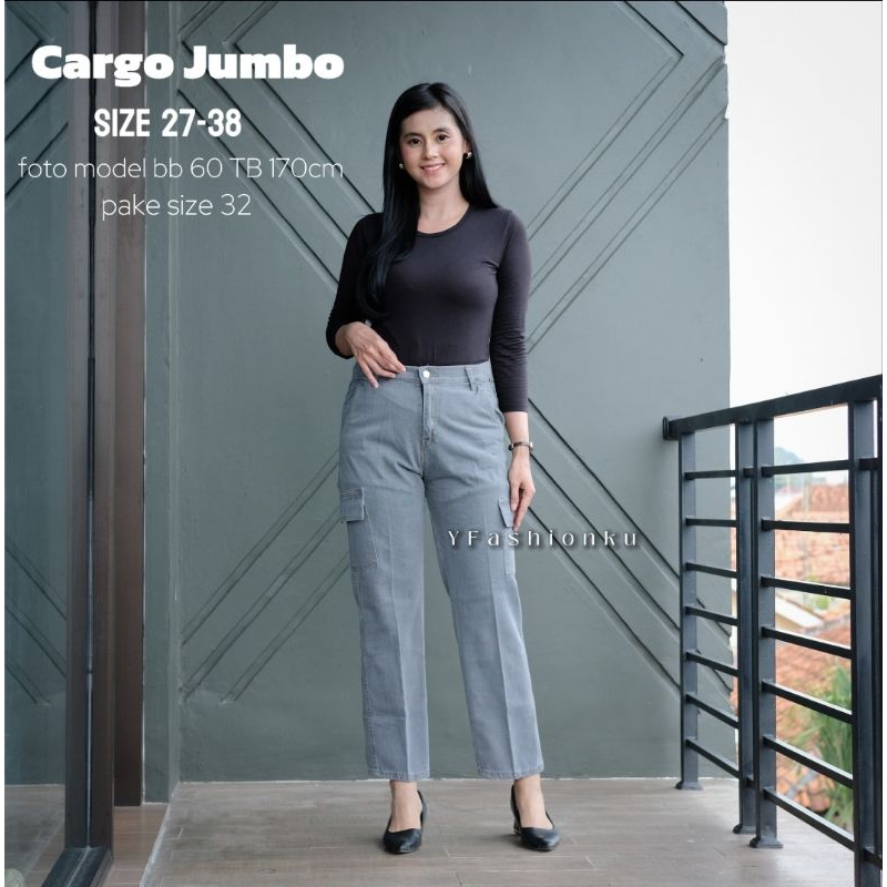 CELANA JEANS CARGO HAIGWAIST JUMBO SIZE 33-38 SUPER JUMBO