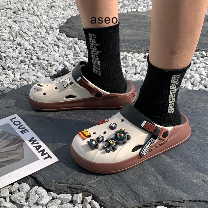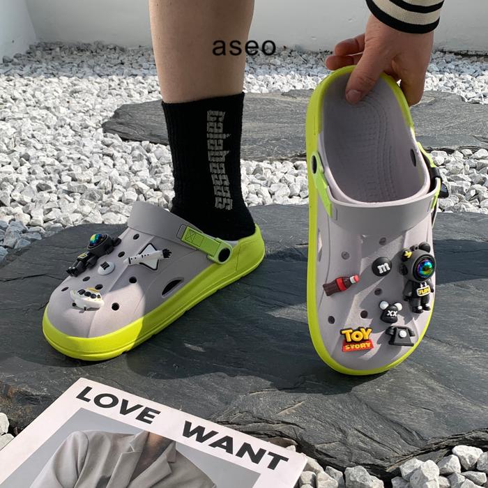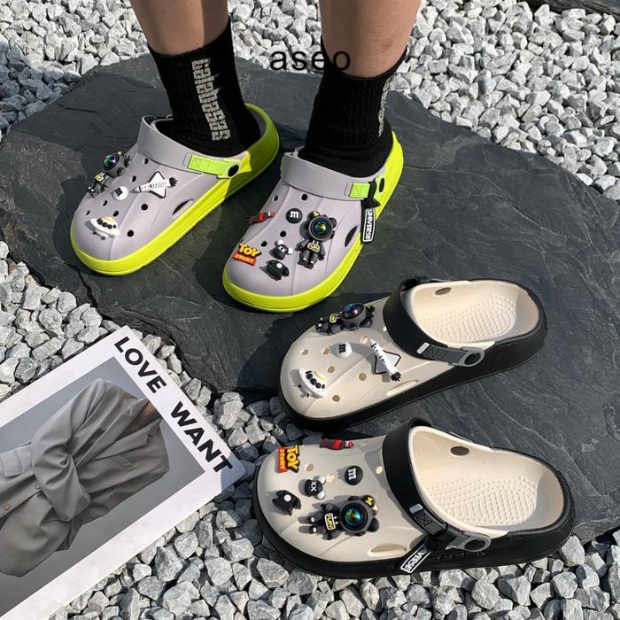 ASEO SANDAL PRIA WANITA DEWASA KEKINIAN BAIM CLOG TERBARU COUPLE LEBARAN 2025 JELLY LUCU SLIP ON IMRT ANTI SLIP SANDAL COWOK DEWASA KARET RUBBER H192 SENDAL - KHAKI, 3637