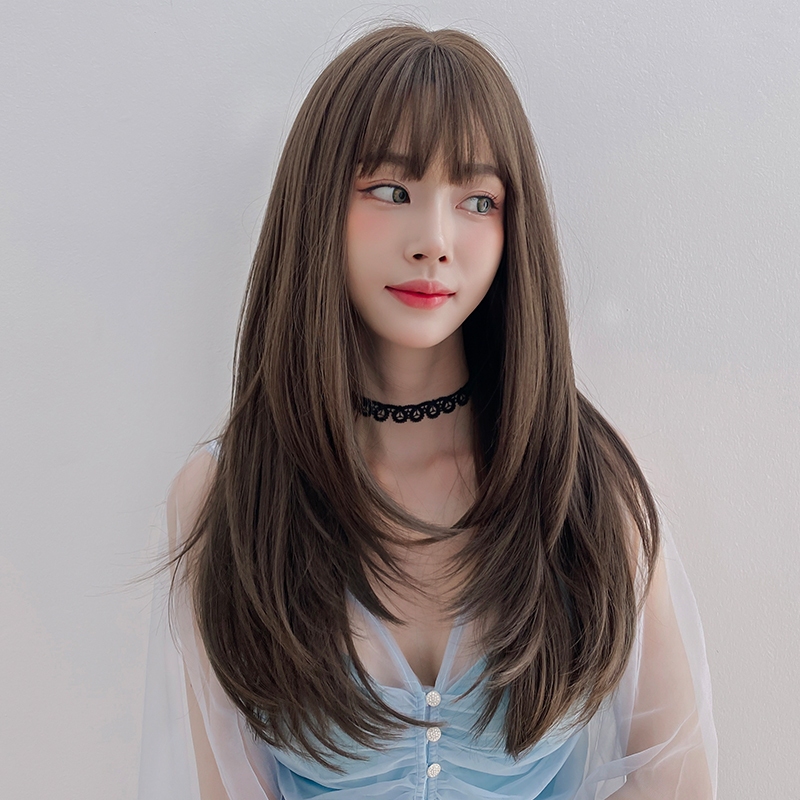 Wig Wanita Full Kepala Rambut Palsu Wanita Korea Straight Lurus Natural Hair Extension 65 Cm