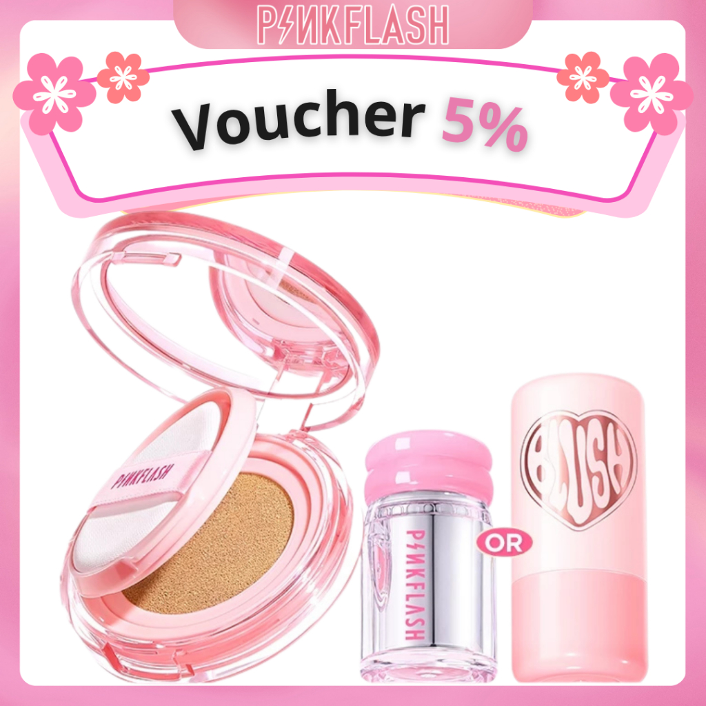 BUNDLING PINKFLASH Clean Girl 2 PCS Makeup Set Cushion Skin-Like Multi-Effect Lasting 12h Waterproof Transferproof Multi