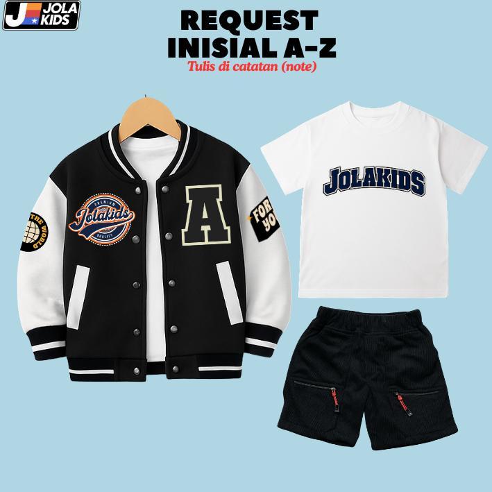 JOLAKIDS Special Bundling Jaket Baseball Inisial + Stelan Baju Anak 2 - 12 Tahun