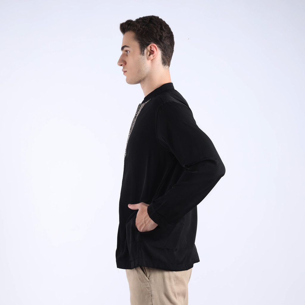 LARUSSO Khair Collection - Kemeja Koko Bordir Lengan Panjang Pria - Jet Black