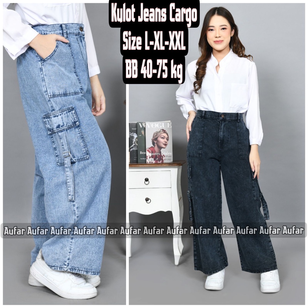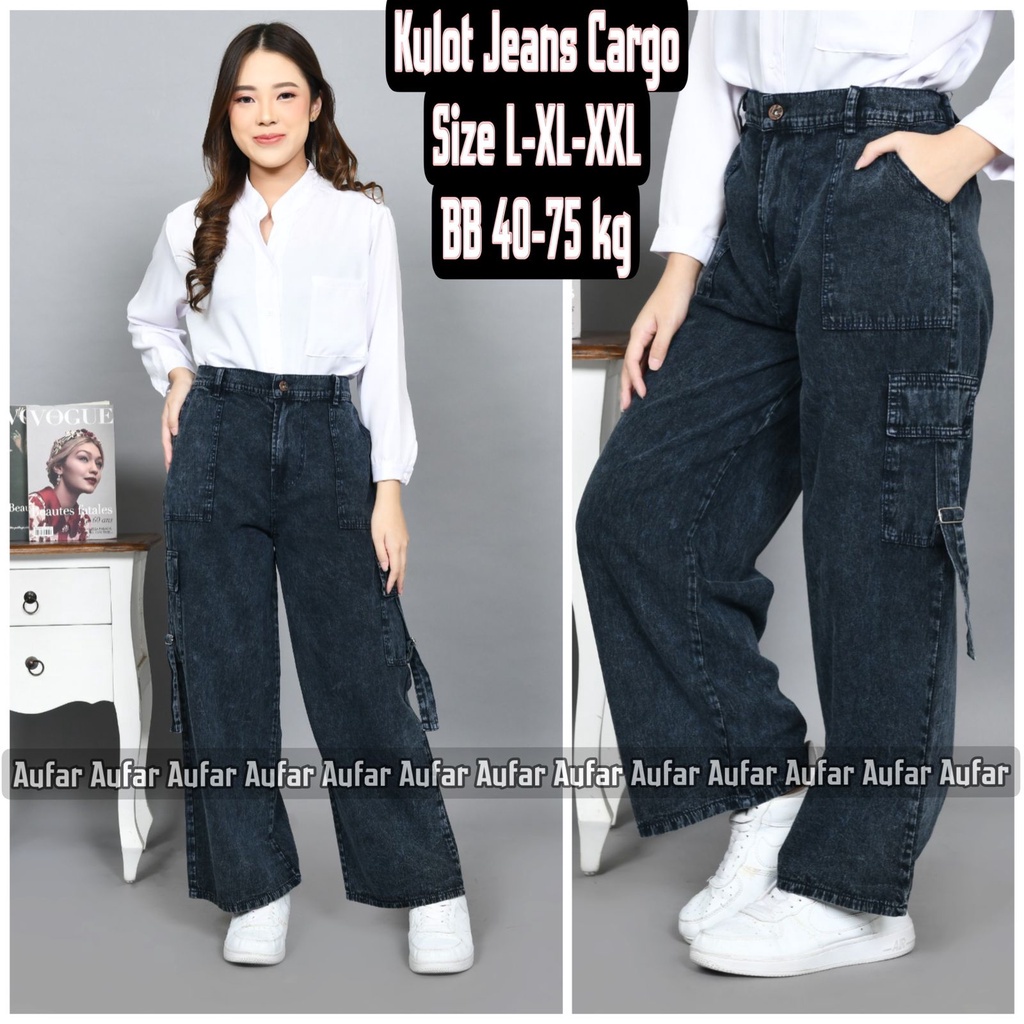 Kulot cargo jeans highwaist wanita dewasa size L XL XXL BB 40-75