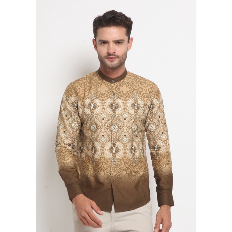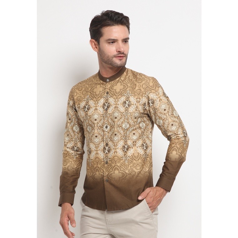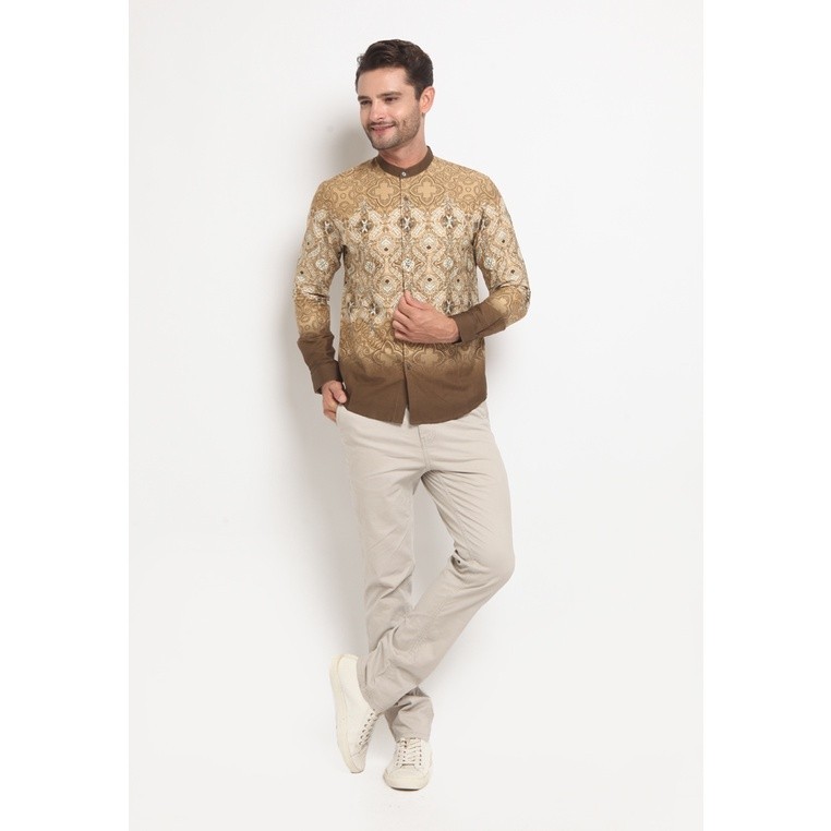 LARUSSO Kemeja Koko Printing Panjang - Gold Brown L162