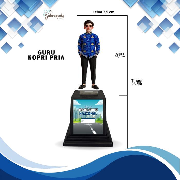 PIALA AKRILIK GURU GURU KORPRIPDHPNSPGRI + CUSTOM STICKER + TATAKAN SOUVENIR TROPI HADIAH BAHAN AKRILIK - PRIA KORPRI_STIKER, MIKA