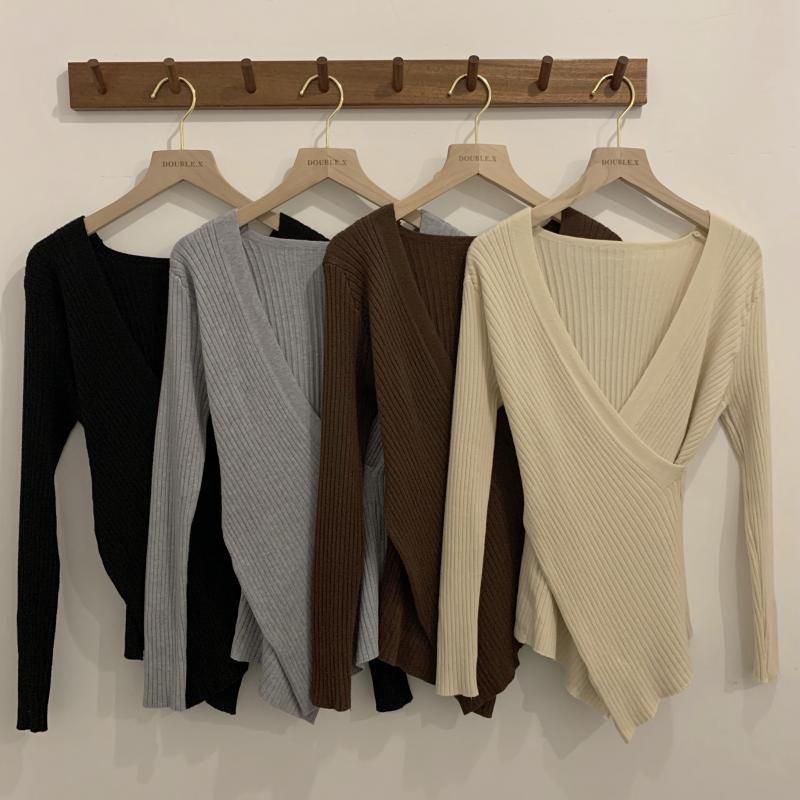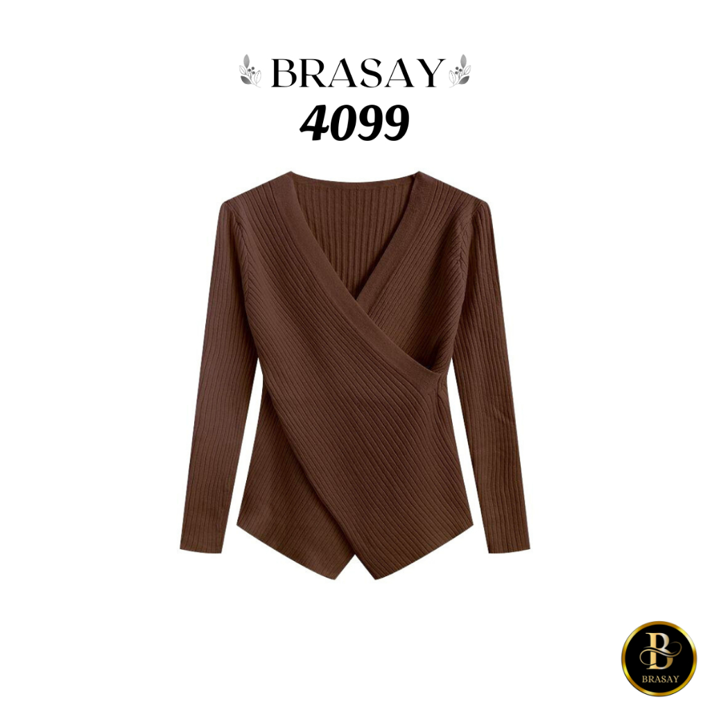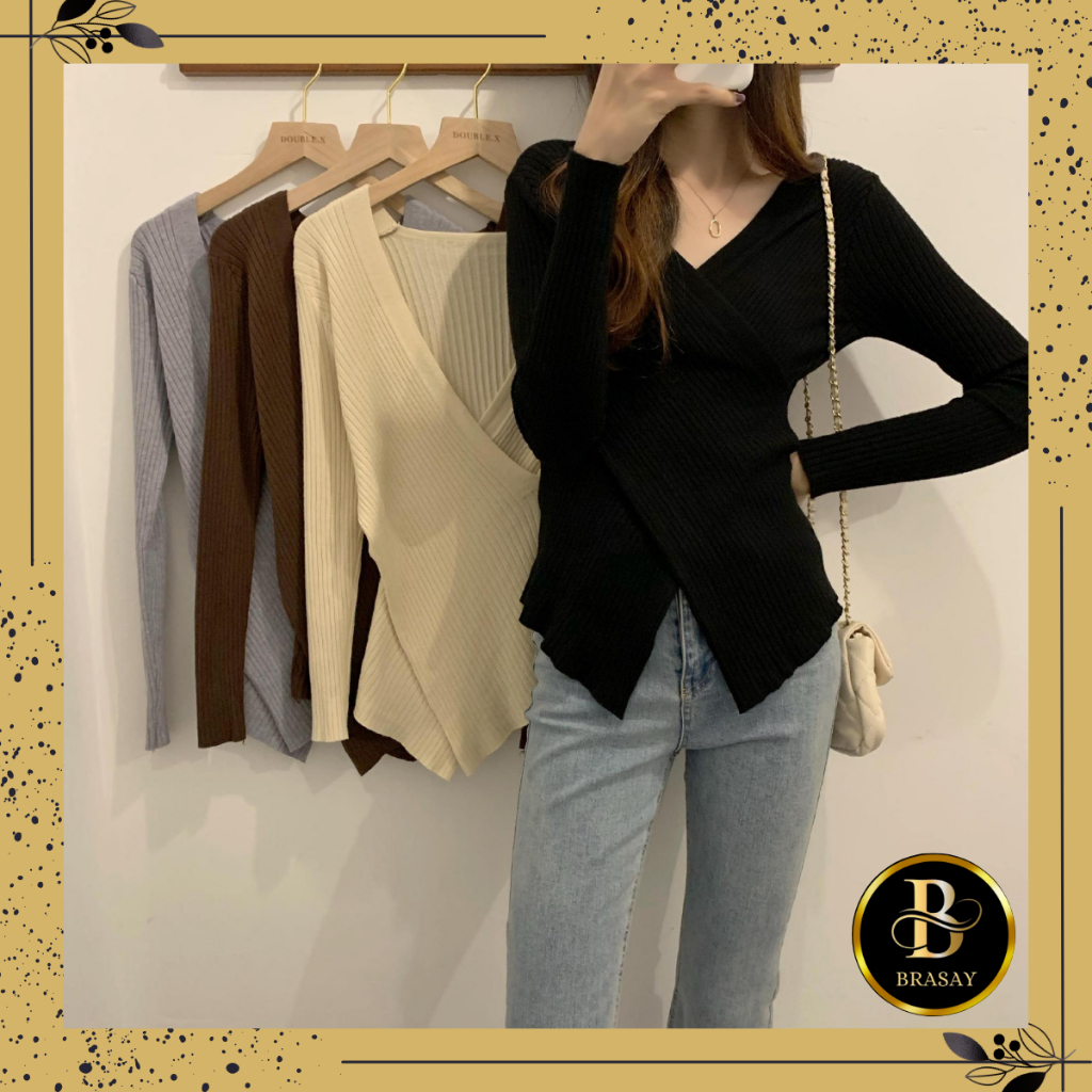 Brasay Sweater Wanita V-Neck Gaya Korea All-Match Pakaian Wanita Knit 4099