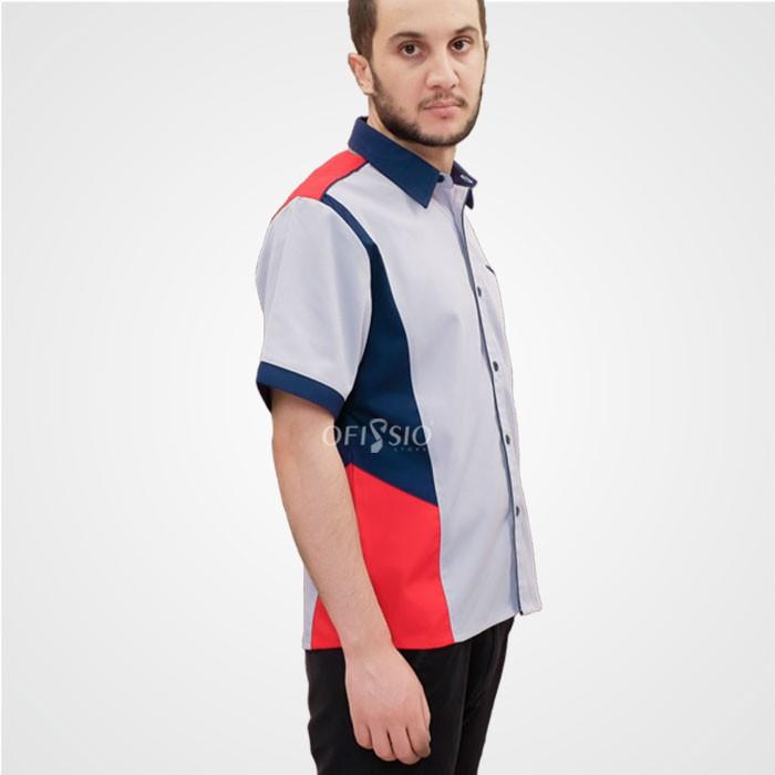KEMEJA KERJA KK-006 - BORDIR MIN 8PC BAJU SERAGAM PANJANG PENDEK NAVY BIRU ATASAN - LENGAN PENDEK, S