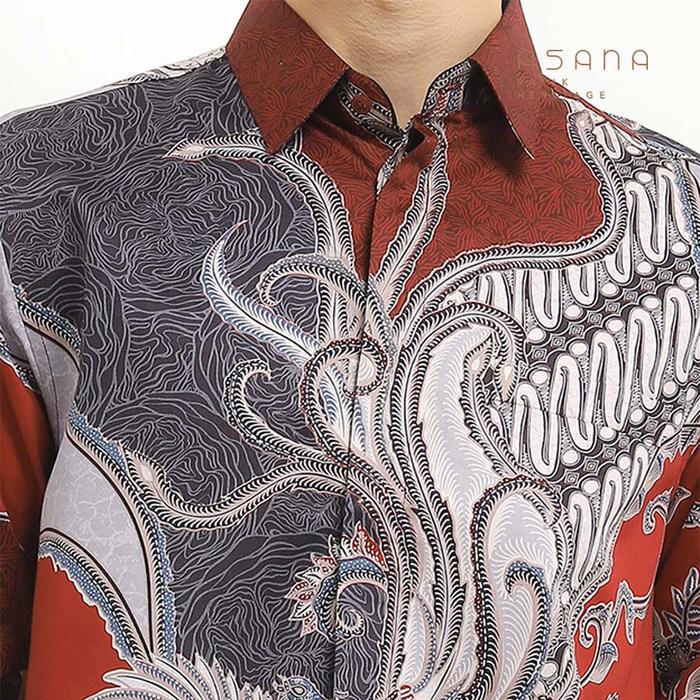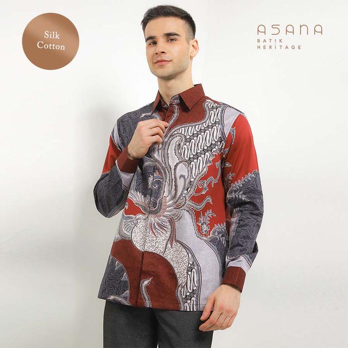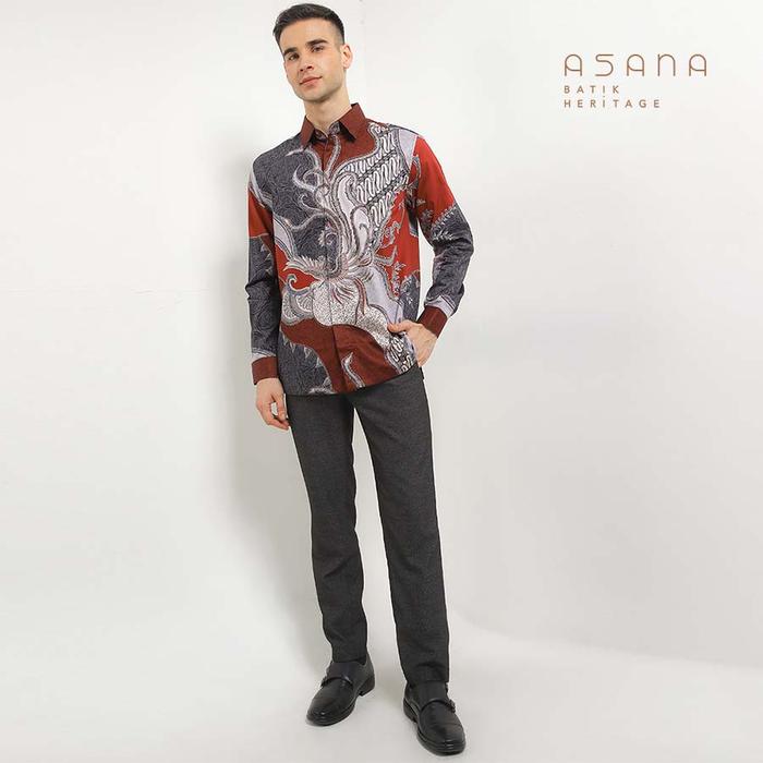 KEMEJA ASANA BATIK LENGAN PANJANG LAMIKA - MAROON - S