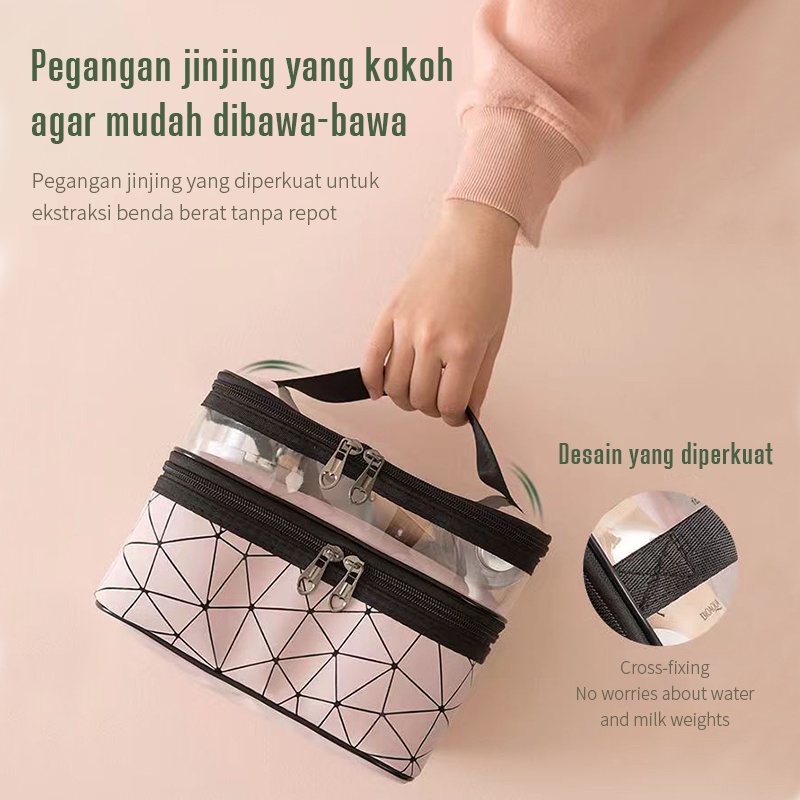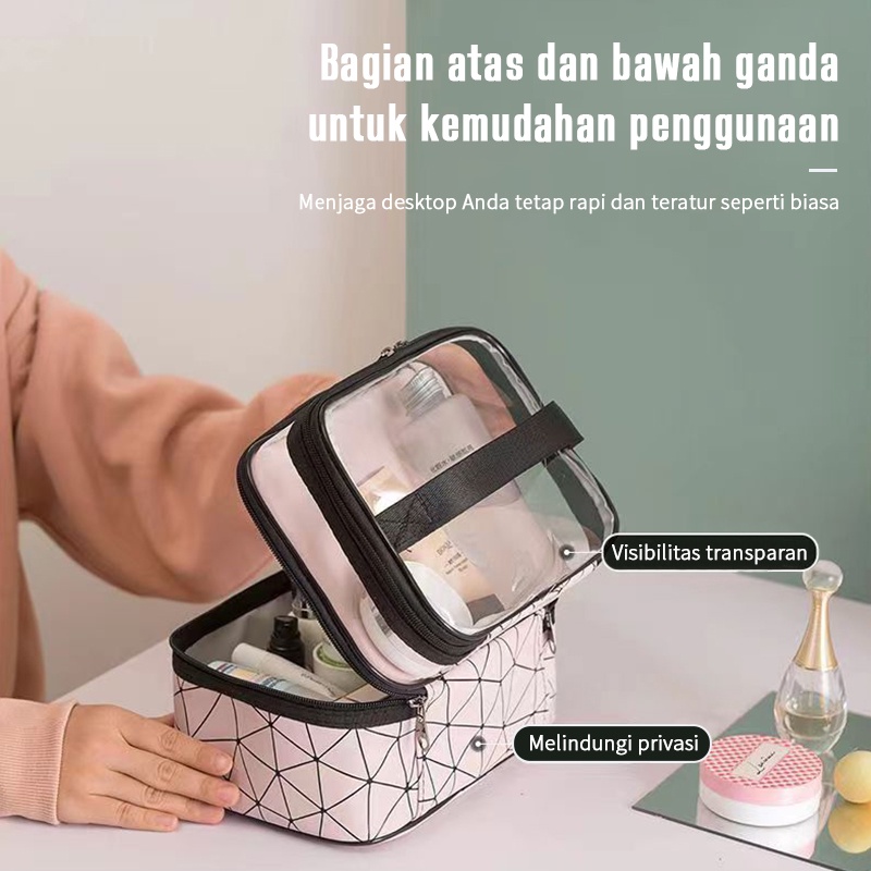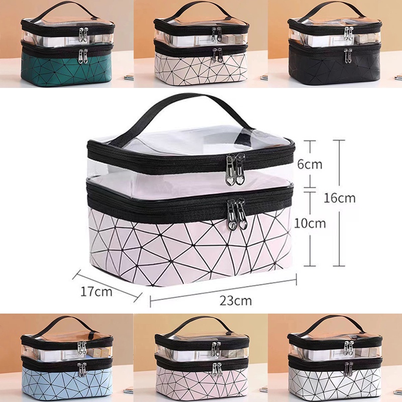 MAANGE Tempat Alat Baru Transparan Travel Tas Koper Make Up Organizer Pouch Bag Dua Lapisan Tas Kosmetik Washbag Kotak C