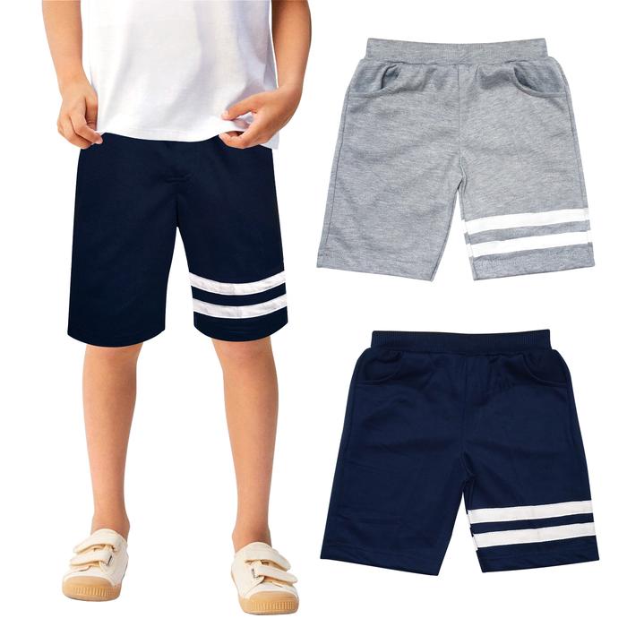 CELANA PENDEK ANAK UNISEX STRIPE BAHAN BABYTERRY USIA 1 TAHUN SAMPAI REMAJA DIATAS 12 TAHUN MAIHIRO KIDSWEAR - ABU, SIZE