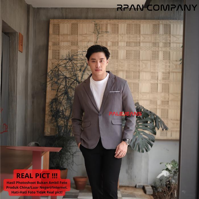BLAZER FORMAL PRIA BLAZER CASUAL PRIA BLAZER ACARA PERNIKAHAN & PERPISAHAN JAS KERJA PRIA. - ABU LIST PUTIH, M