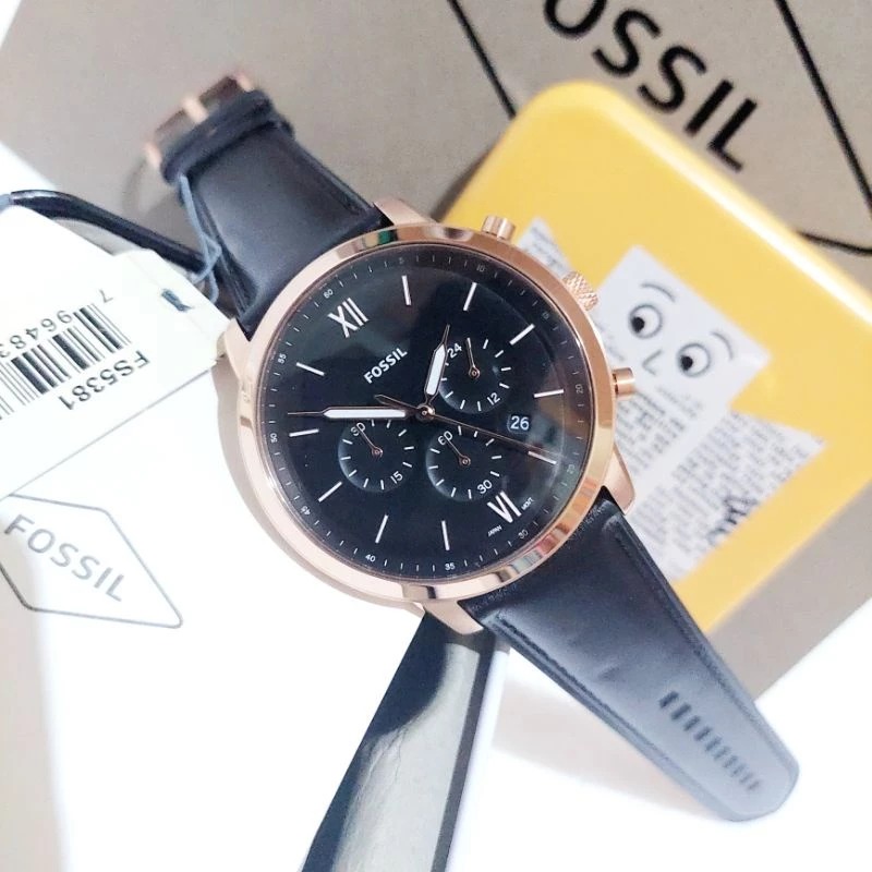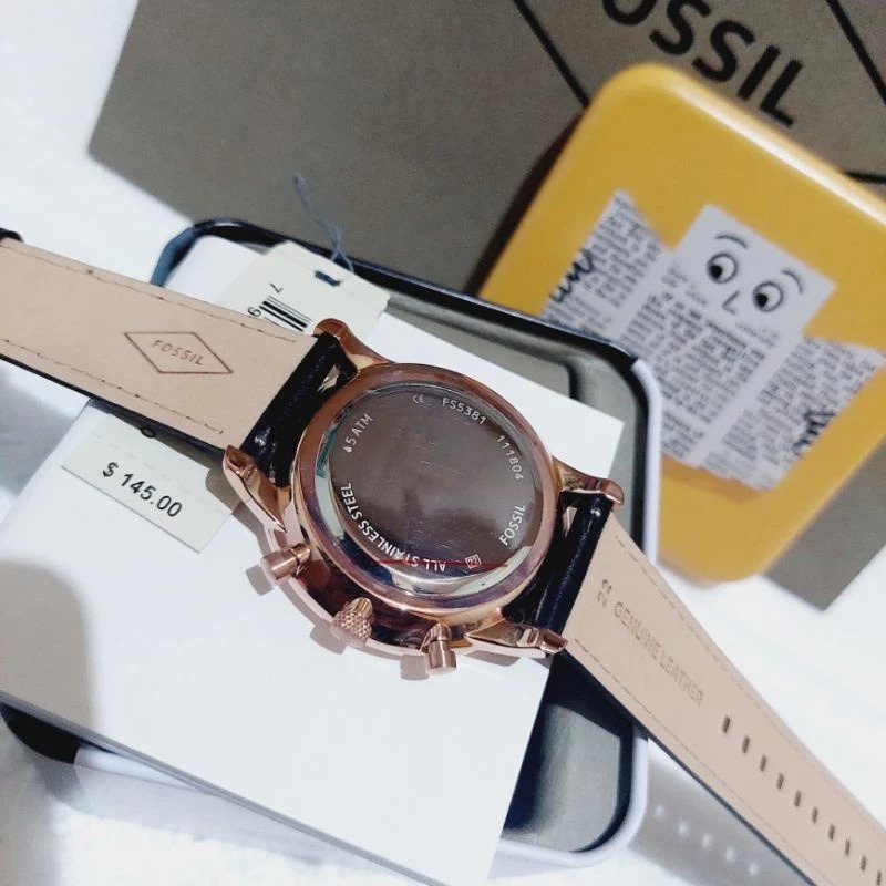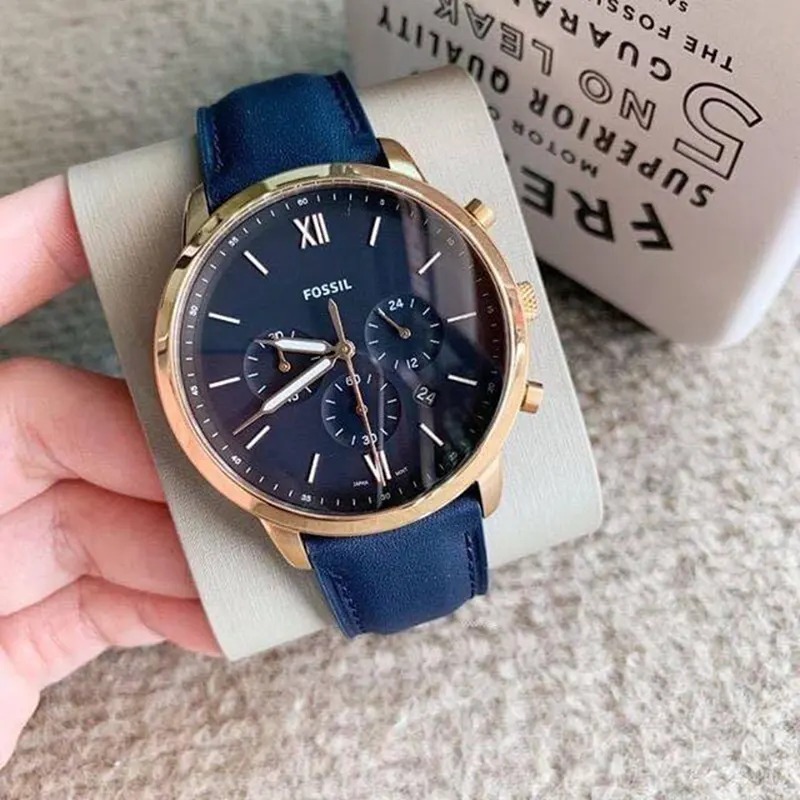 JAM TANGAN PRIA FOSSIL FS5454 / FS 5454 BLUE ROSEGOLD LEATHER FREE ONGKIR - FREE BOX