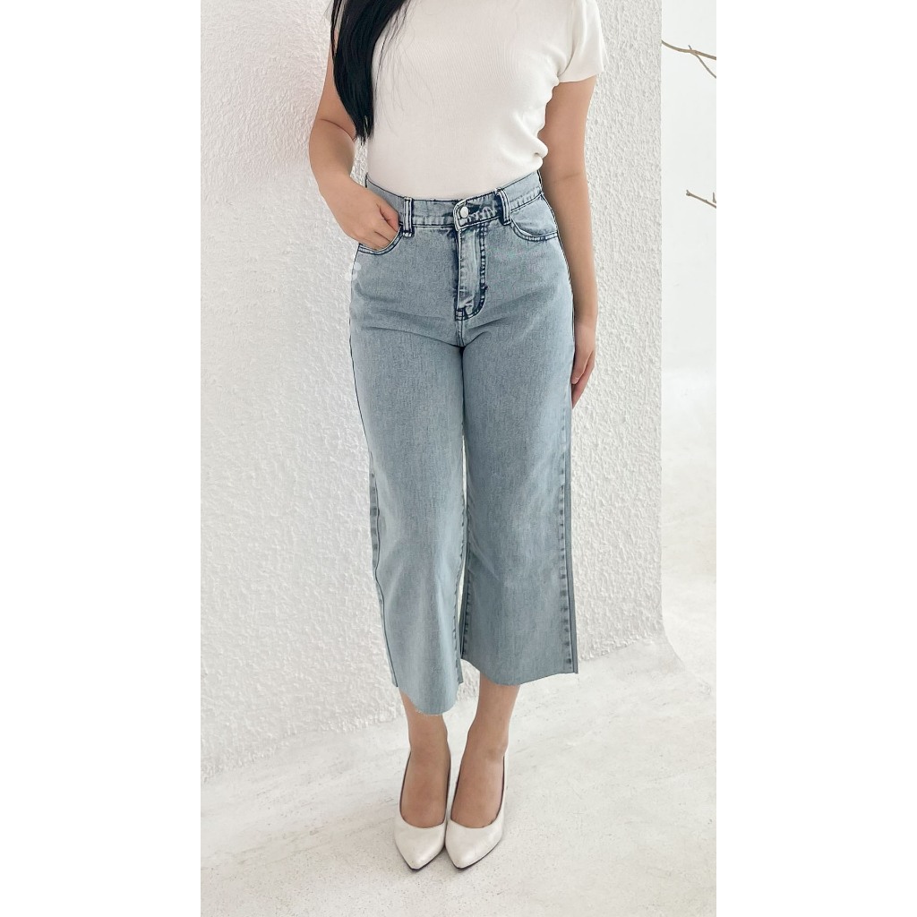 Shenelin Celana Kulot Jeans Wanita Unfinished 7/8 Premium Highwaist Scarlet Kekinian Biru Tua Hitam Putih