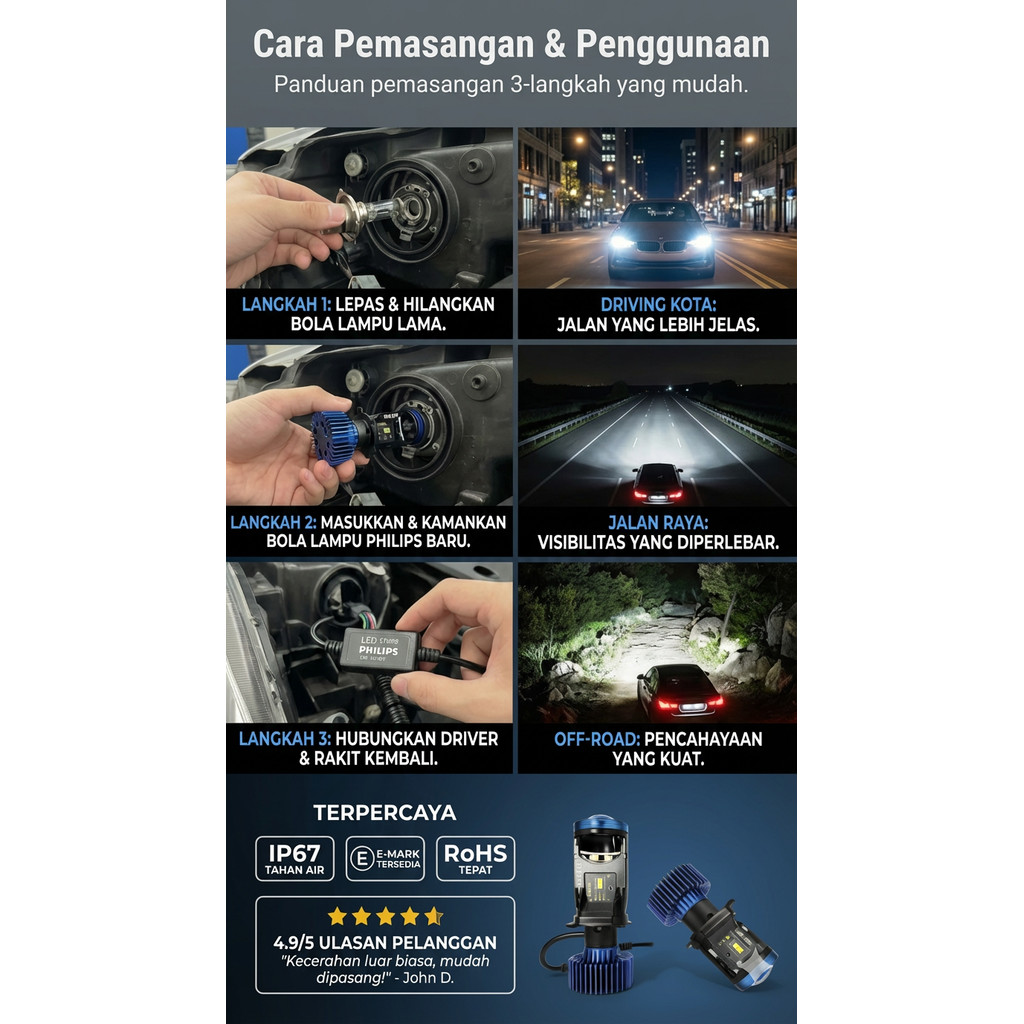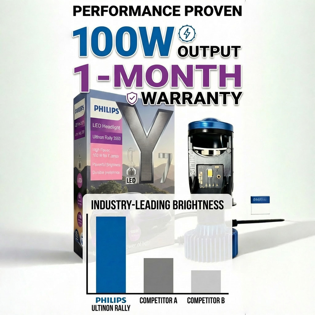 Lampu Depan Mobil Philips H4 Y7D / Tahan Lama / Model Upgrade Mobil Super Terang / Dengan Kipas Pendingin Asli