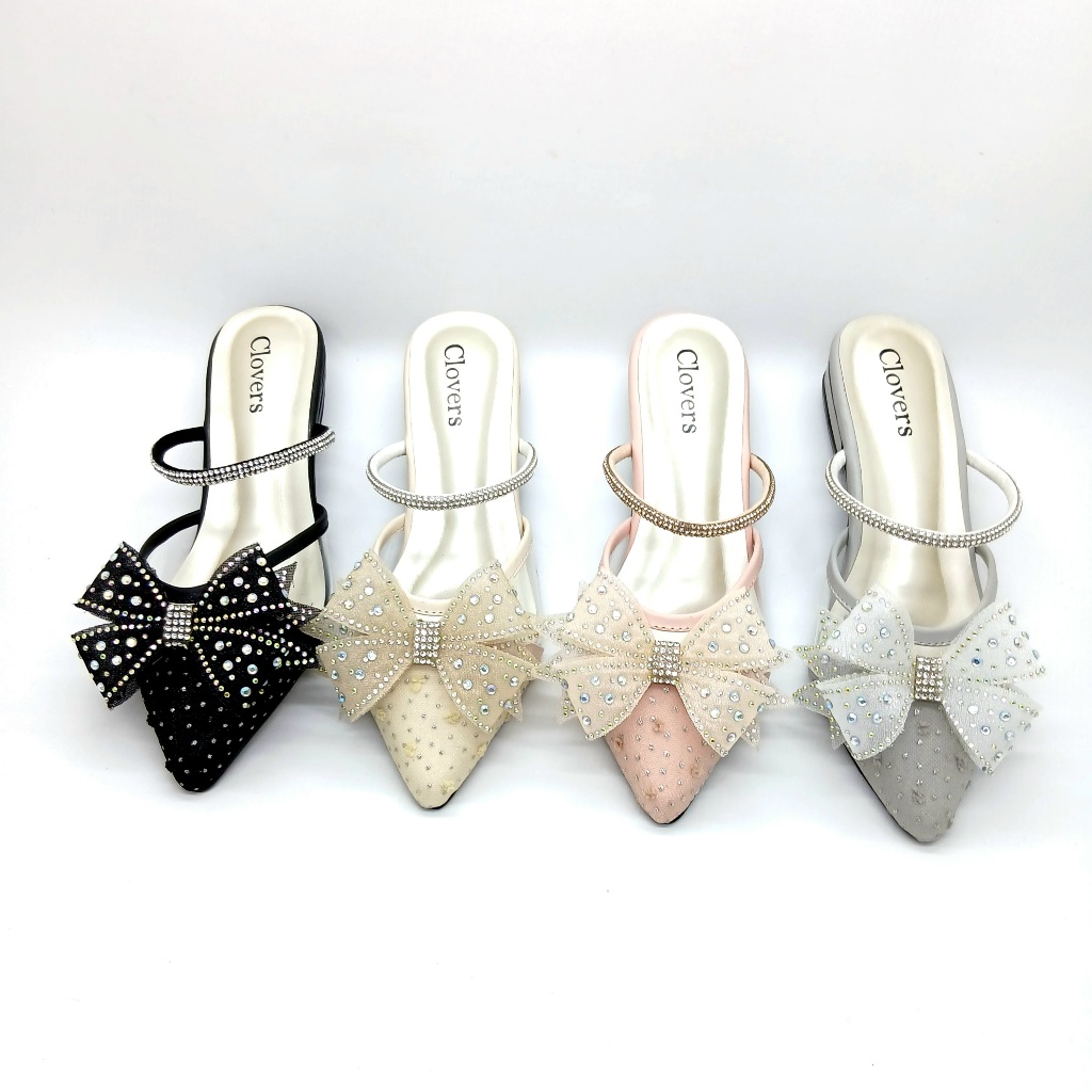 Clovers KIDs 202 Sandal Pesta Anak Permpuan Brukat Henis Flat Hak Tahu 2 CM
