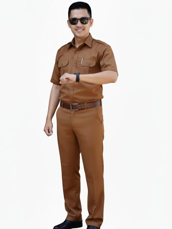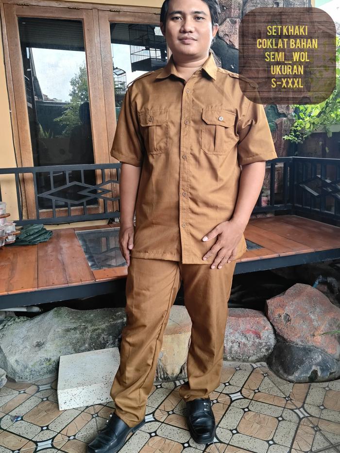SATU SET BAJU KHAKI COKLAT PRIA LENGAN PENDEK SERAGAM PNS PRIA LENGAN PANJANG BAJU DINAS PEMDA BAJU PDH COKLAT PRIA - S