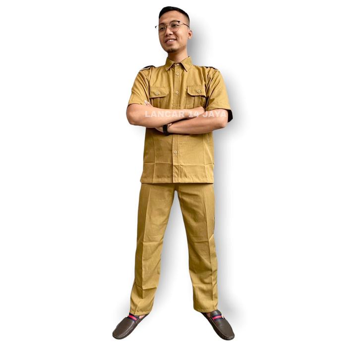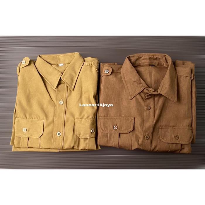 LANCAR JAYA SERAGAM PNS SERAGAM PEMDA PRIA KHAKI TUA BAJU PDH PEGAWAI NEGERI DINAS PEMERINTAH BAJU GURU - COKLAT TUA, XL