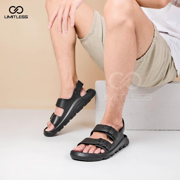 LIMITLESS SENDAL SLOP PRIA TALI CASUAL SEPATU SANDAL PRIA TERBARU EVA BLACK KARET - NAVY, 39