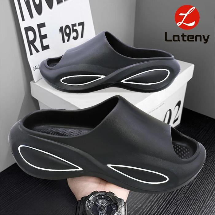 LATENY SANDAL LUAR RAN PRIA, ANTI-SELIP, ANTI-BAU, SANDAL PRIA BERSOL TEBAL, SANDAL PANTAI OLAHRAGA LUAR RAN - HITAM-5, 35-36