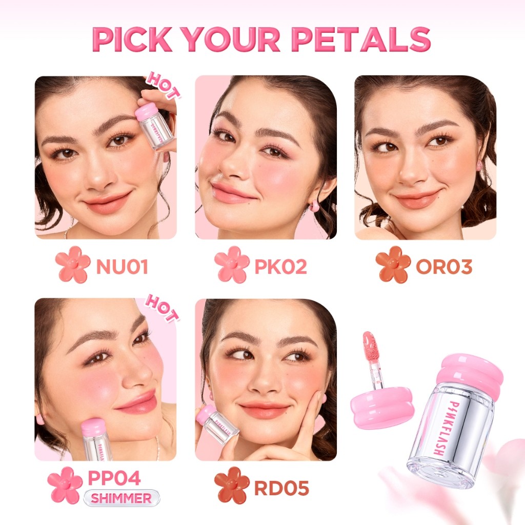 PINKFLASH 2PCS Makeup Set Multi-Effect Cushion Lasting 12h Transferproof Multi-Use Petal Blush Pot Watery Blush Stick