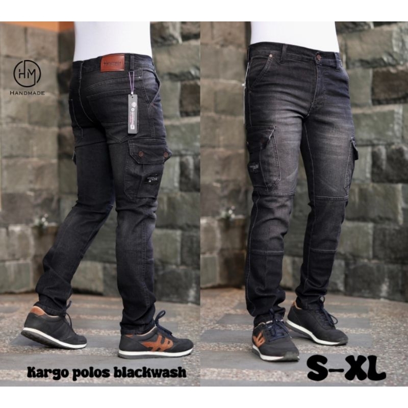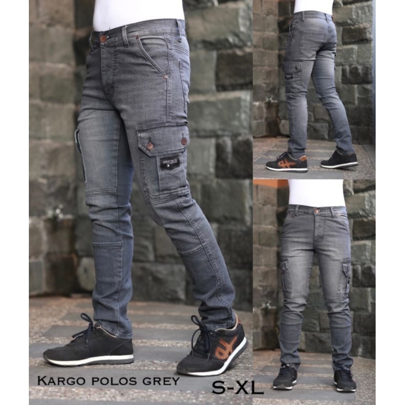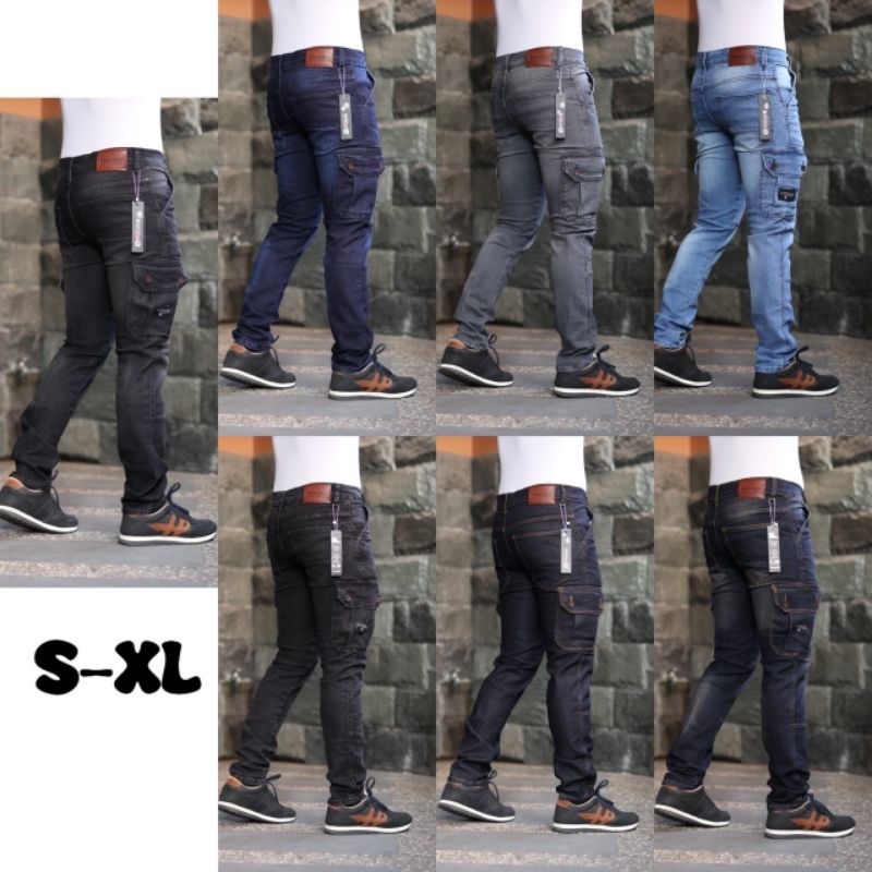 Celana jeans pria Cargo panjang Lokal Brand slimfit Celana Denim Cargo panjang Terlaris