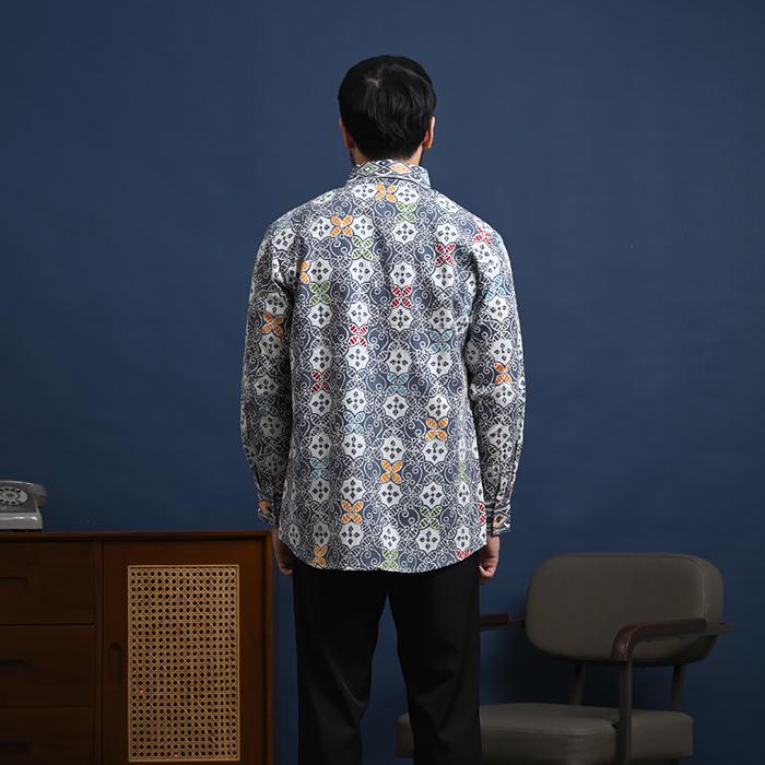 TRABALHO - BANAWA LONG WONOGIREN GREY L0138, KEMEJA BATIK PRIA LENGAN PANJANG - S