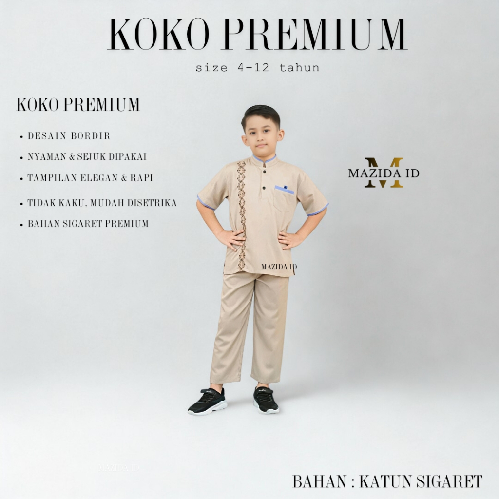 Setelan Koko Anak Laki-laki Motif Bordir Elegan Bahan Sigaret Premium Tebal Dan Nyaman