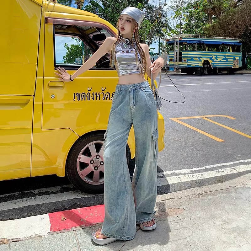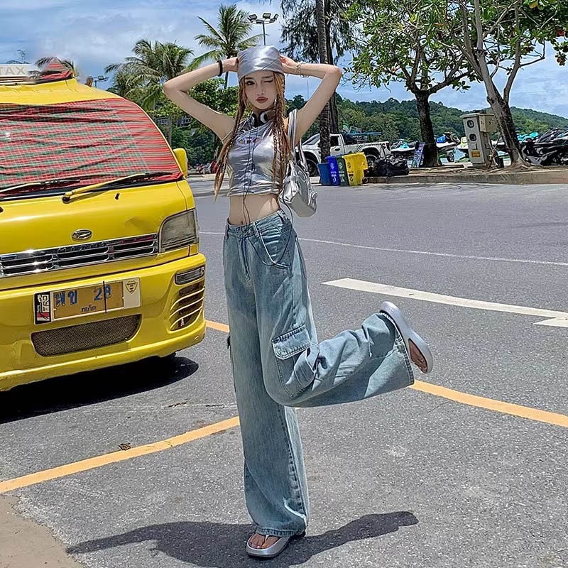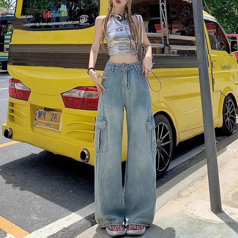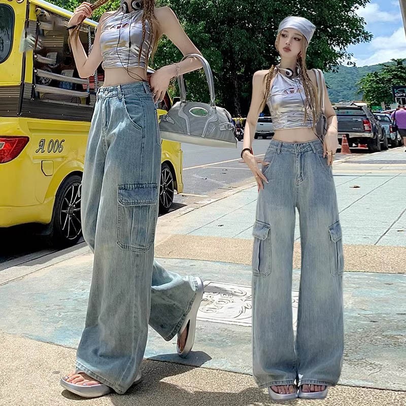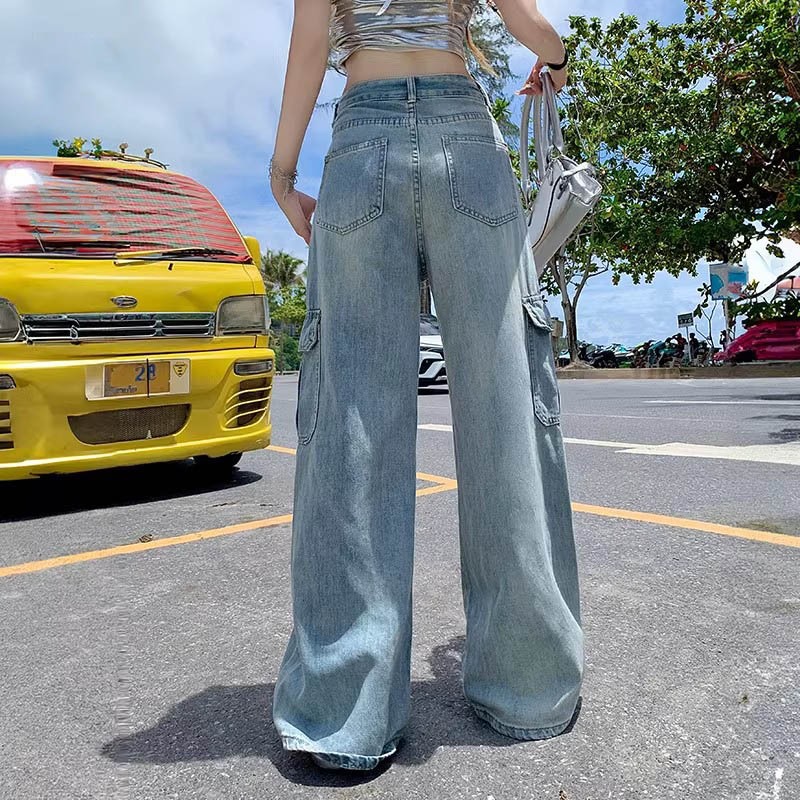 |kekinian.factory| Celana Cargo jeans wanita panjang cewek Korean style baggy pants kargo celana denim dewasa casual 2024