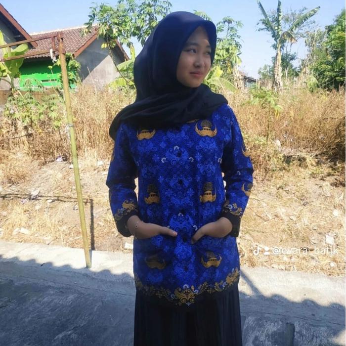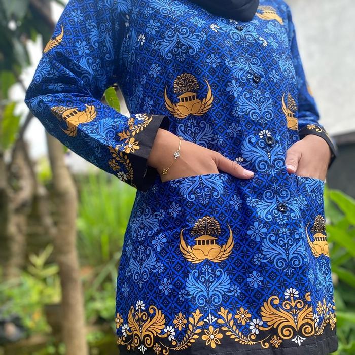 EVARA BATIK BAJU KORPRI SERAGAM KERJA ATASAN PANJANG TERBARU KATUN C40S KERAH HITAM WANITA PRIA UKURAN S-8L - PRIA PURING, S