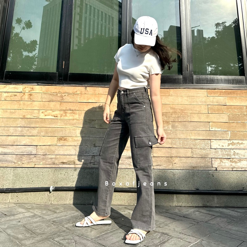 Boxofjeans - JOY Cargo Stretchy Loose Jeans - GREY