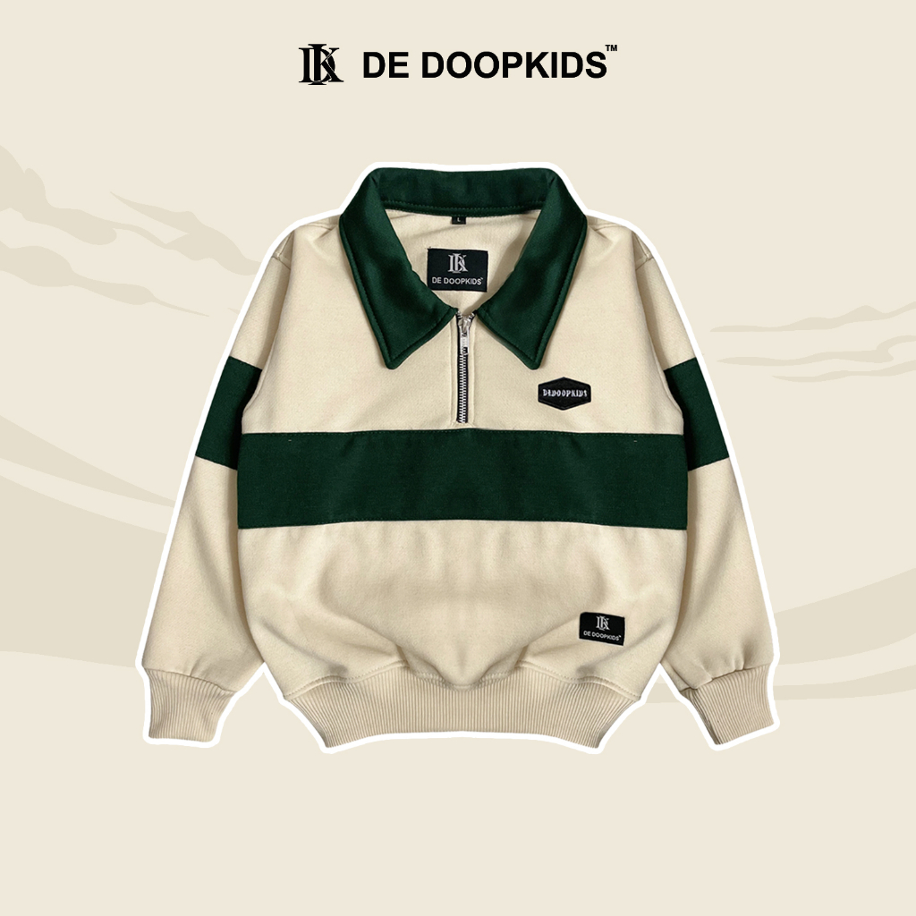 Jaket Rugby Anak 3-13 Tahun & Untuk Dewasa / Jaket Kerah Resleting Crem