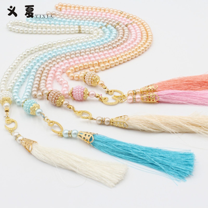 Tasbih Tangan 99 Butir dengan Manik Mutiara Imitasi 6mm, Cocok untuk Shalat dan Doa Sehari-hari
